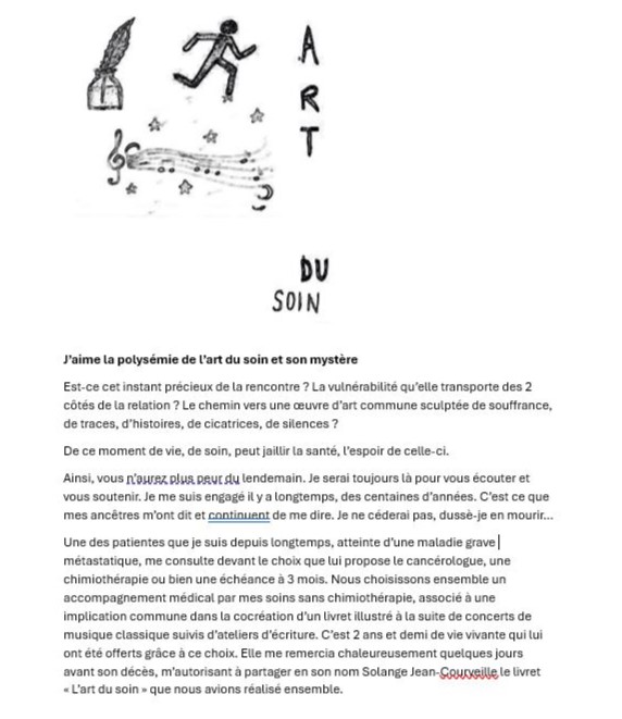 Voici deux exemples de récits en lien avec le partenariat de soin qui pourraient entrer dans la constitution d’un cordel.